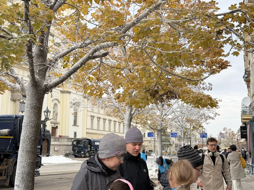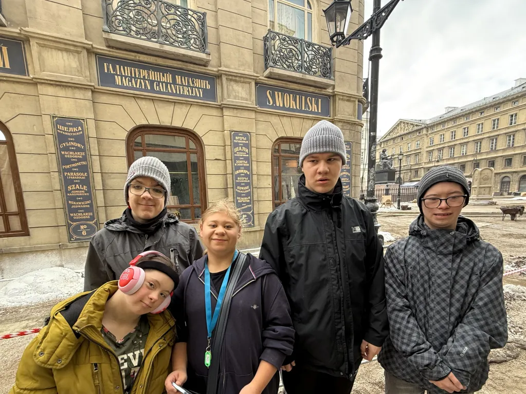 Podczas spaceru po Krakowskim Przedmieściu obserwowali filmowców przy pracy, scenografię, rekwizyty i sztuczny śnieg, który zmienił ulicę Warszawy w zimową scenerię sprzed ponad stu lat.