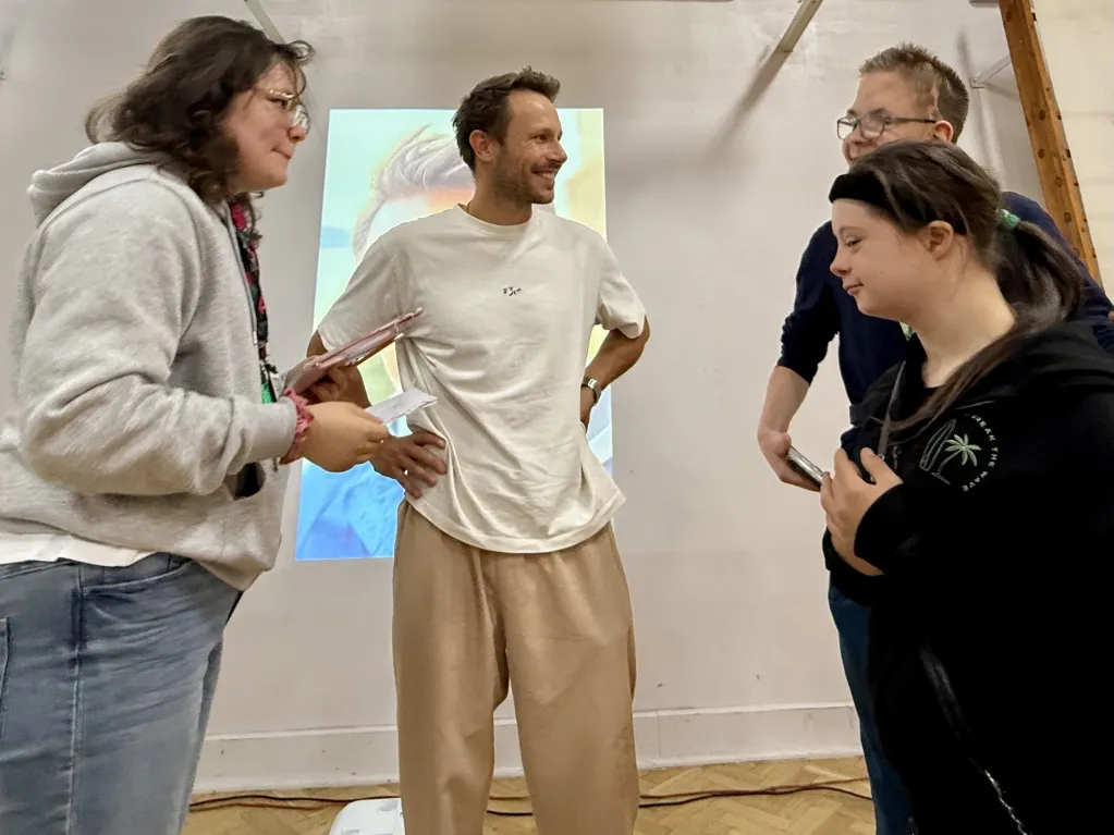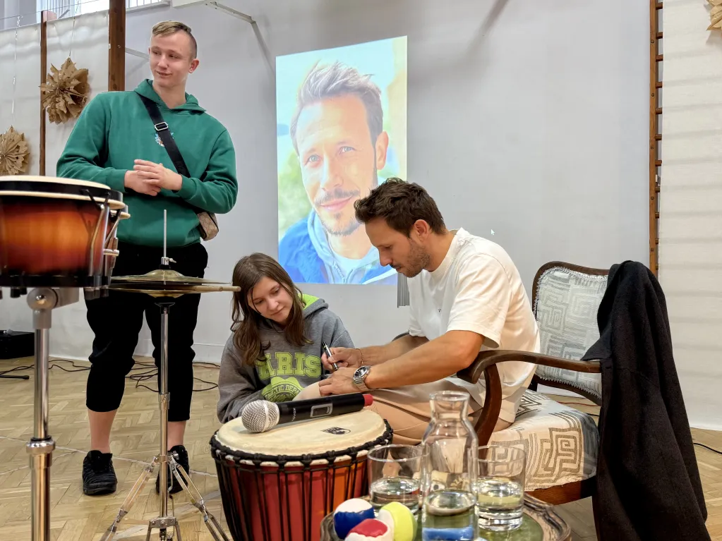 Spotkanie od pierwszych minut stało się żywą rozmową pełną ciekawych historii, żartów i refleksji. Pan Mateusz opowiadał o sobie bez retuszu. Przyznał, że nie znosi gotować, że szkoła nigdy nie była jego pasją — z polskiego zwykle miał ocenę 3. Ale dziś jest człowiekiem sumiennym, bardzo wymagającym wobec siebie. Pracy nie traktuje lekko — stara się, by była wykonana najlepiej, jak potrafi.